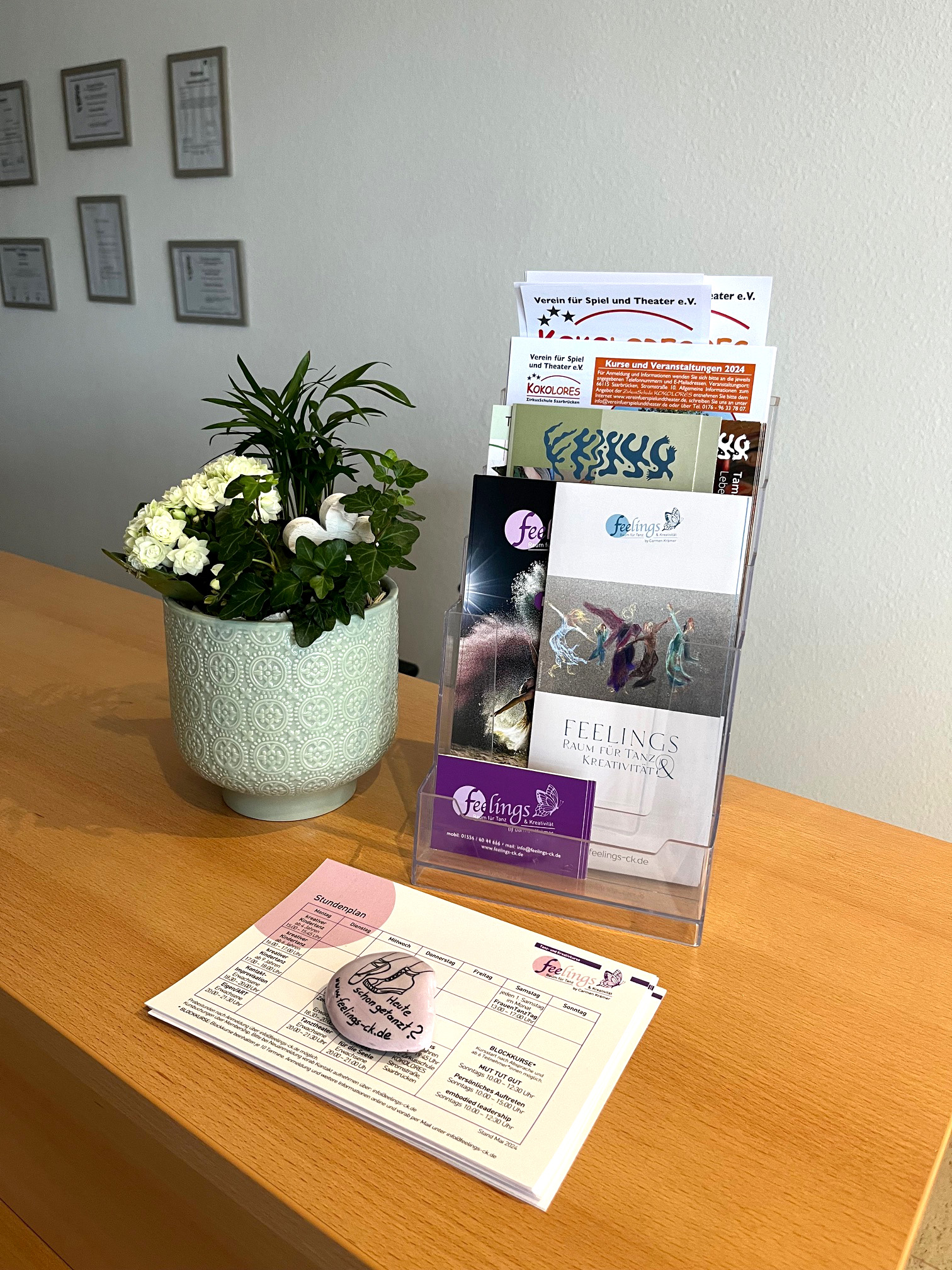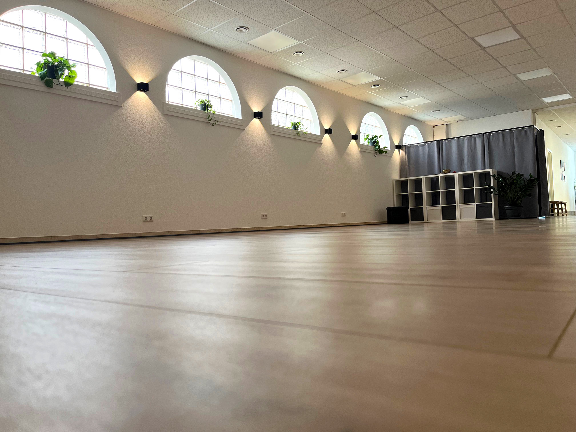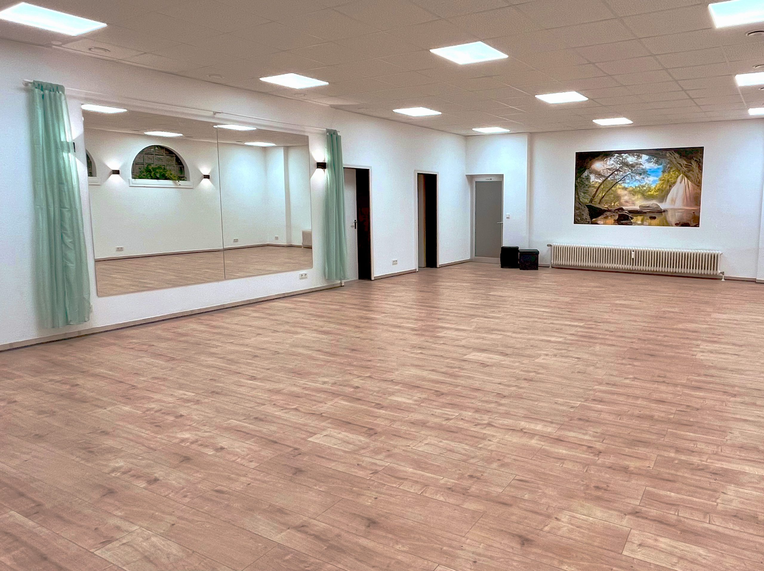 Der gemütliche Eingangsbereich lädt zum Verweilen und Wohlfühlen ein, während der Tanzraum mit seinen ca. 80 qm Tanzfläche für viele unterschiedliche kreative Kurse und Workshops geeignet ist.